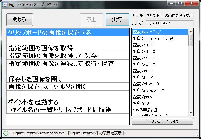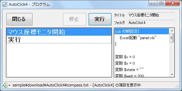 ActiveCompass上で動作するプログラムのサンプルを公開しています。 左列の「プログラムダウンロード」をクリックすると、プログラムファイルを含めた圧縮ファイル(lzh)をダウンロードすることができます。 左列の「ソースコード」をクリックすると、プログラムソースコードを表示することができます。 ActiveCompassは下記のアドレスで公開しています。 http://activecompass.net/ | |