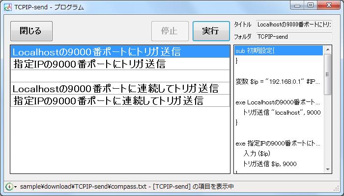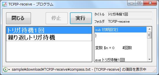 プログラムダウンロード ソースコード | ![]() ※ コマンドの受信を行うためには、Windows Firewallに通信を許可する必要があります。 |