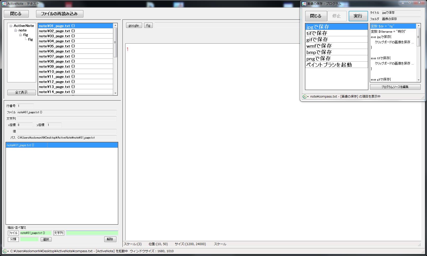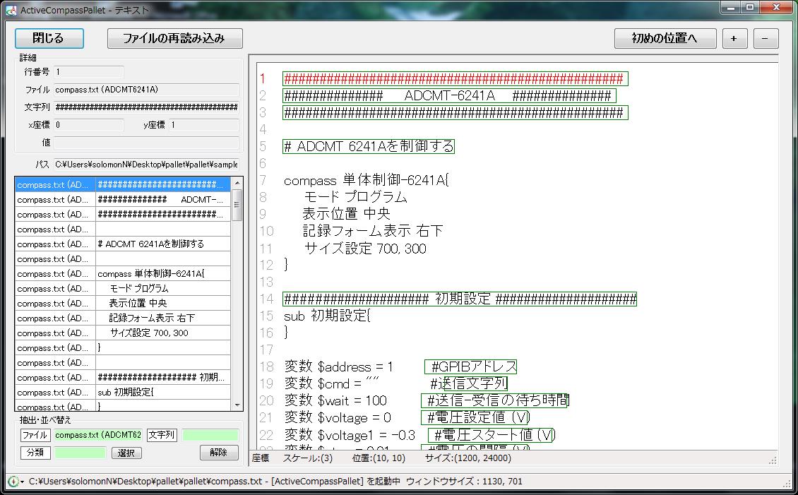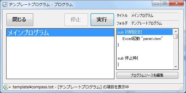 ActiveCompass上で動作するプログラムのサンプルを公開しています。 左列の「プログラムダウンロード」をクリックすると、プログラムファイルを含めた圧縮ファイル(lzh)をダウンロードすることができます。 左列の「ソースコード」をクリックすると、プログラムソースコードを表示することができます。 ActiveCompassは下記のアドレスで公開しています。 http://activecompass.net/ | |